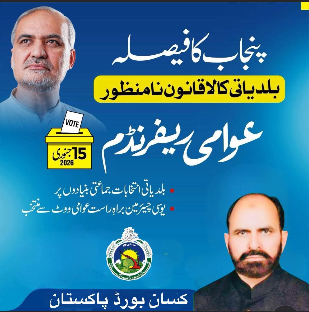 پنجاب کی عوام کا فیصلہ پنجاب کے کسانوں کا فیصلہ بلدیاتی کالا قانون نا منظورعوامی ریفرنڈم 15 جنوری 2026