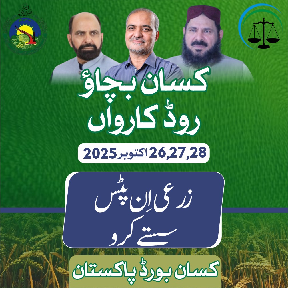 چھبیس،ستائیس اور اٹھائیس اکتوبر کو کسان بورڈ پاکستان اور جماعت اسلامی پنجاب (وسطی) کے زیرِ اہتمام “کسان بچاؤ روڈ کارواں” کا انعقاد کیا جائے گا۔